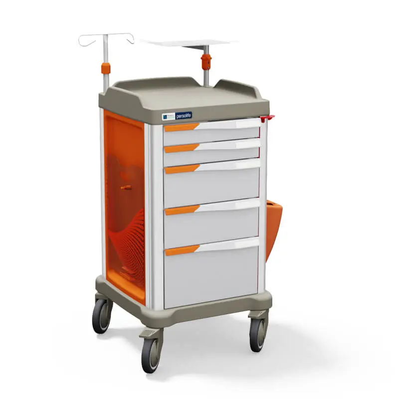 The Persolife 400 Compact emergency trolley provides a high-performance solution for clinical environments where rapid access to emergency equipment is essential. Designed with a compact footprint while maintaining generous storage capacity, this trolley is ideal for hospitals, clinics and emergency care settings.